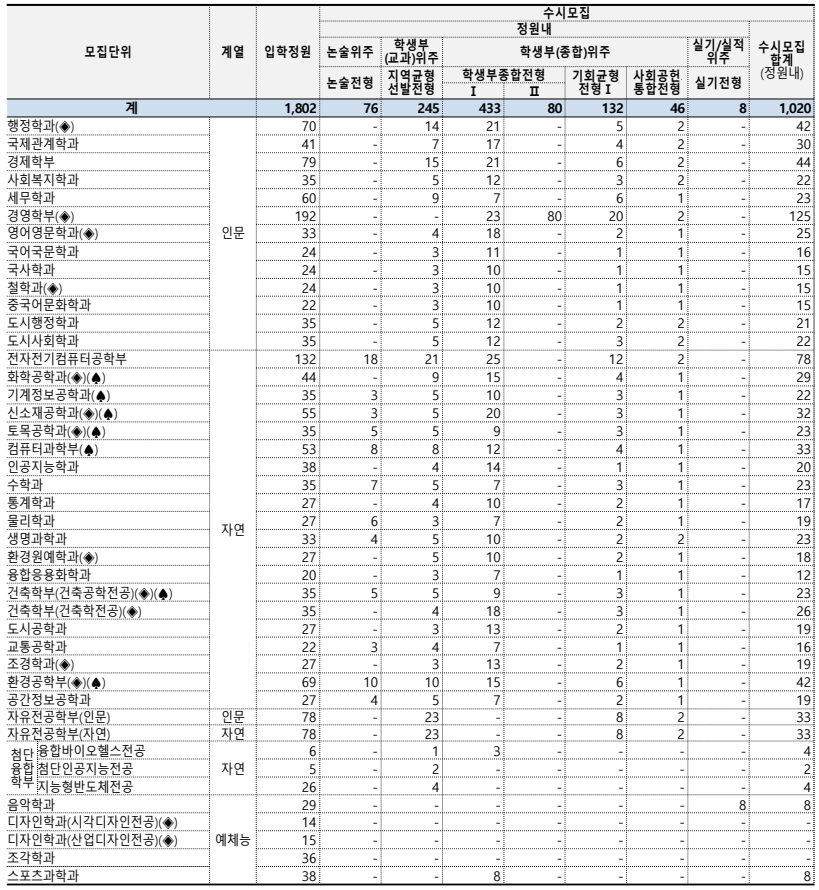서울시립대는 다양한 전공과 모집단위를 갖춘 공영대학으로, 수시에서는 학생부교과, 학생부종합, 논술 등 여러 전형을 운영합니다. 각 전형별 학과 구성을 확인해봅시다.